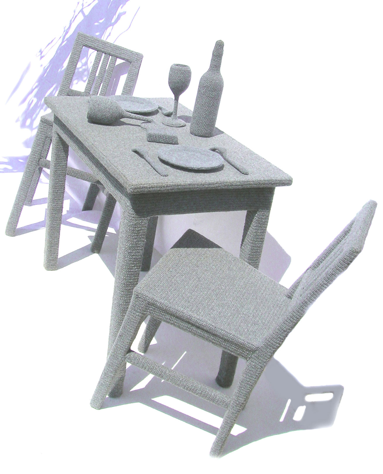„one table, two chairs and a covered dinner“ 2000 – 2002 – aktuell zu sehen in der Ausstellung